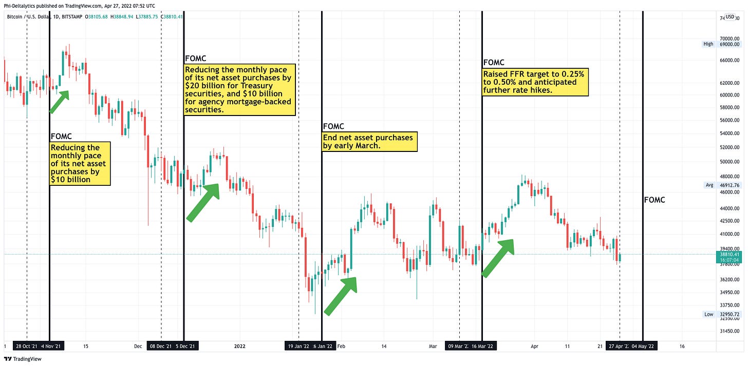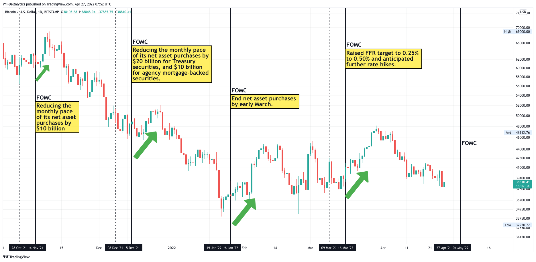 The next FOMC meeting (May 3-4th) is now around the corner. I think most of the bearish expectations are priced in already, and the meeting will likely lead to a relief rally in the short-term. We generally observe increased speculation and volatility when the FOMC meeting’s close, so do expect some chop actions in the following week.